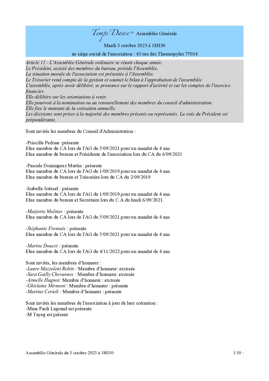 Vous trouverez en P.J. le compte rendu de l'Assemblée Générale du 3 octobre.